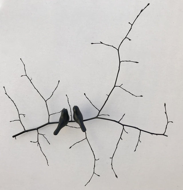 Branche de charme noir avec 2 oiseaux noirs. Si vous souhaitez un oiseau blanc ou or, contactez moi !