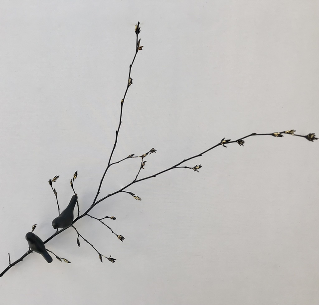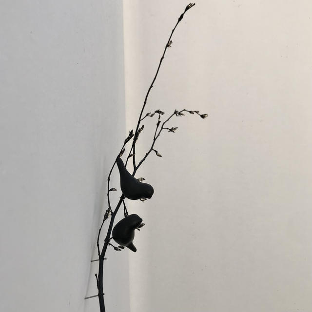 Branche de charme Noir avec 2 oiseau noirs.